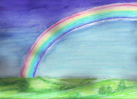 En er plotseling vanuit het niets een grote regenboog verscheen.